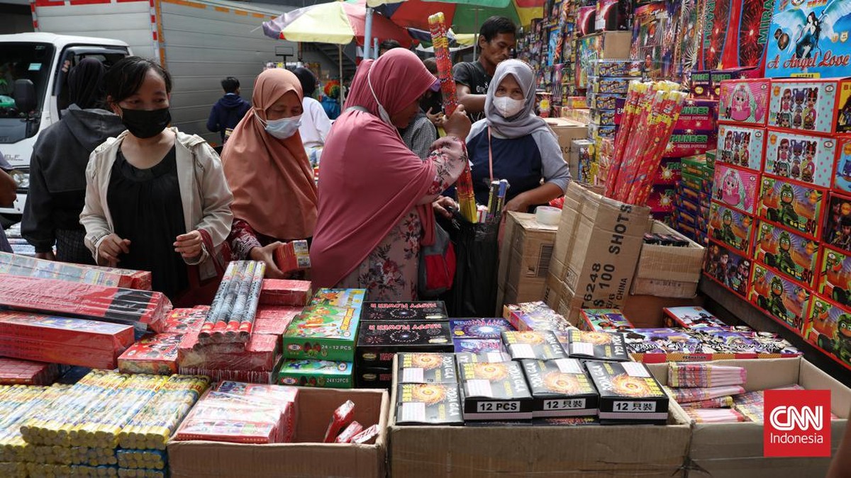 FOTO: Kembang Api dan Petasan Dilarang, Lapak Pedagang Tetap Ramai