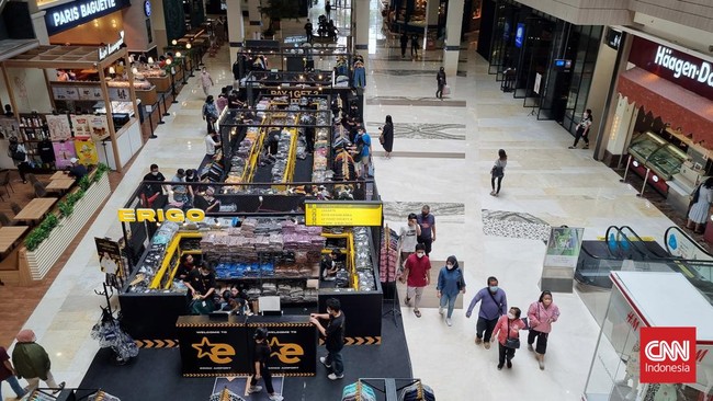 Pantauan CNNIndonesia.com di lokasi pukul 12.00 WIB, pelbagai sudut pusat perbelanjaan nampak dipenuhi oleh pengunjung. Keramaian pengunjung terlihat khususnya di area-area toko pakaian di dalam mal tersebut.