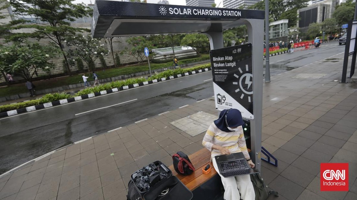 -- Pengunjung bisa car HP hingga sepeda listrik di stasiun pengisi daya tenaga surya atau charging station di Dukuh Atas.