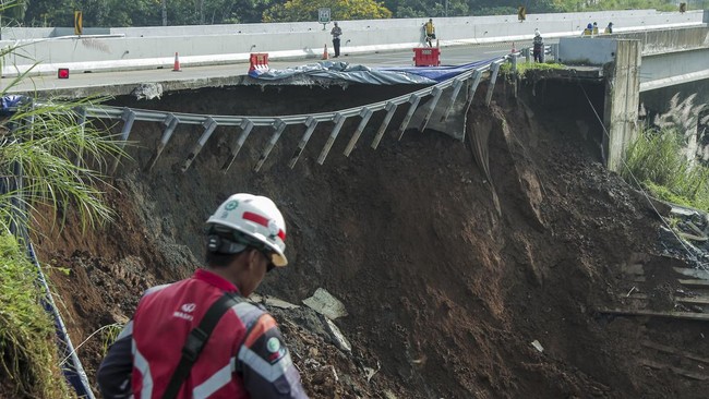 FOTO: Menengok Perbaikan Tol Bocimi yang Dikebut usai Amblas