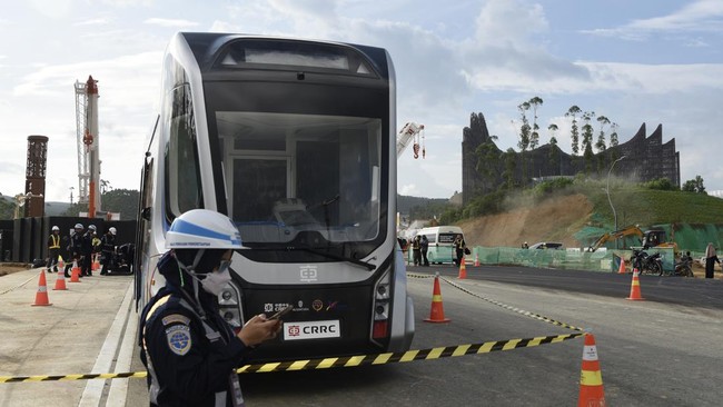 -- Kereta tanpa rel atau autonomous rail transit (ART) di IKN Nusantara mulai diuji coba pada Senin (5/8). Berikut penampakannya.