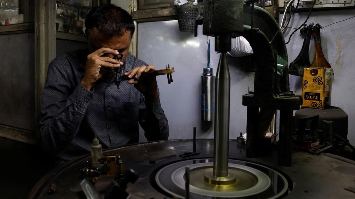 Mesin-mesin pemotong berlian biasanya hanya dimatikan saat perayaan Diwali, festival terbesar di India. Namun, kemungkinan sejumlah perusahaan pengrajin berlian bakal tutup permanen sebelum perayaan Diwali pada Oktober. (REUTERS/Amit Dave).