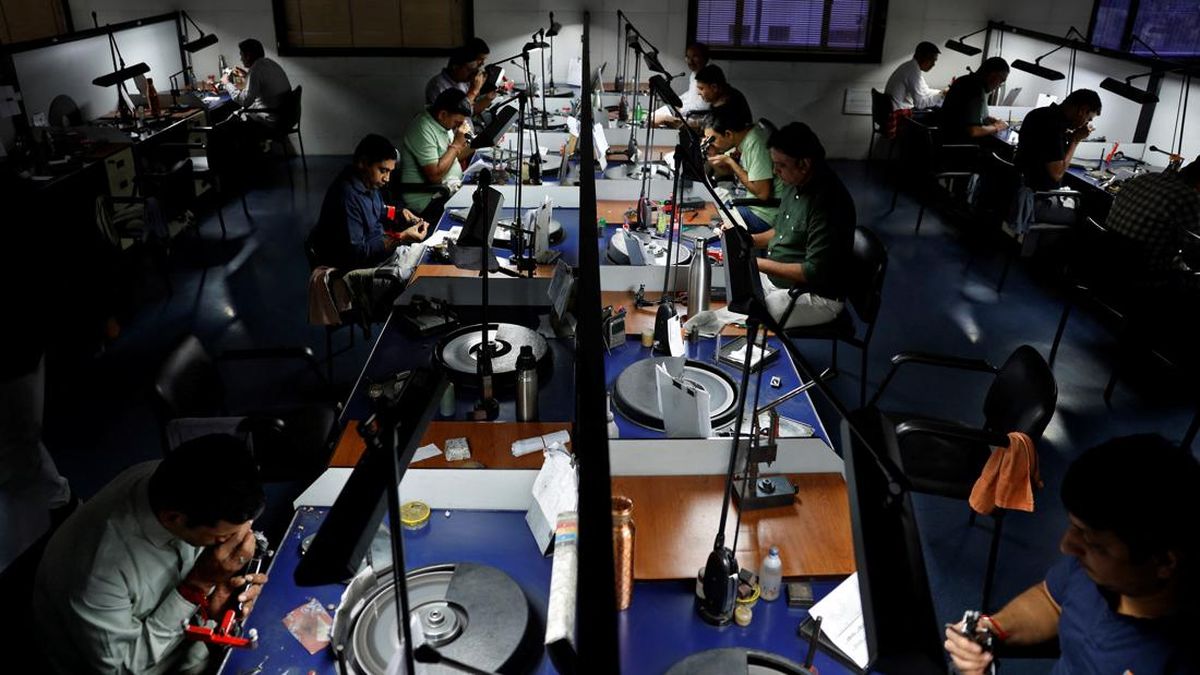 Para pengrajin berlian di India terkena pukulan telak akibat tarif 50 persen yang diterapkan Donald Trump untuk semua barang impor asal India. (REUTERS/Amit Dave).