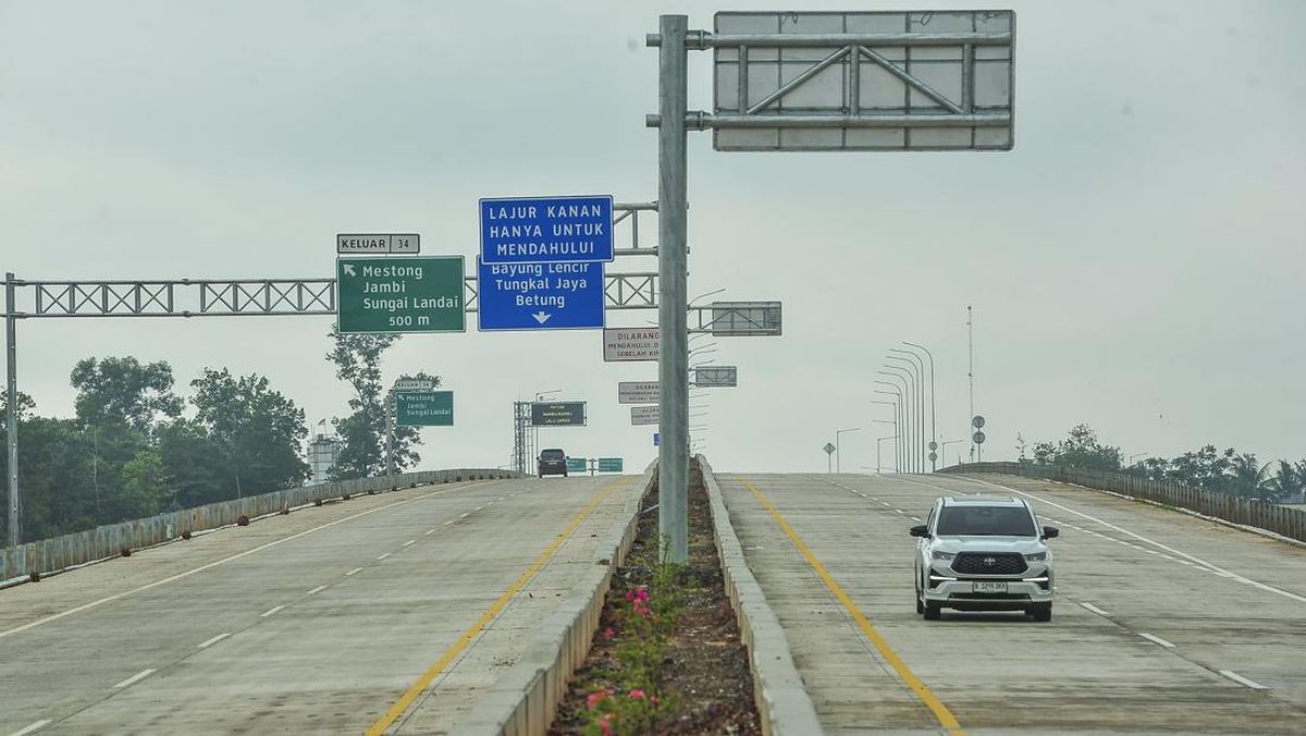 PT Hutama Karya (Persero) secara resmi mulai mengoperasikan Jalan Tol Betejam Seksi 3 Segmen Tempino-Simpang Ness sepanjang 18,49 kilometer tanpa tarif mulai 14 September 2025 sehingga melengkapi pengoperasian tanpa tarif Jalan Tol Betejam Seksi 3 Segmen Bayung Lencir-Tempino sejak akhir 2024. (ANTARA FOTO/Wahdi Septiawan)