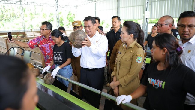 "Sekarang harga kelapa butir di petani hanya Rp2-3 ribu. Kita minta pelaku industri untuk menaikkan harga beli supaya petani untung. Jangan sampai nilai tambah hanya berhenti di pabrik. Kalau harga kelapa dinaikkan sedikit, saya bantu 10 ribu hektare untuk seluruh Maluku Utara," ujar Amran saat berkunjung ke pabrik pengolahan kelapa PT NICO, Minggu (27/10).