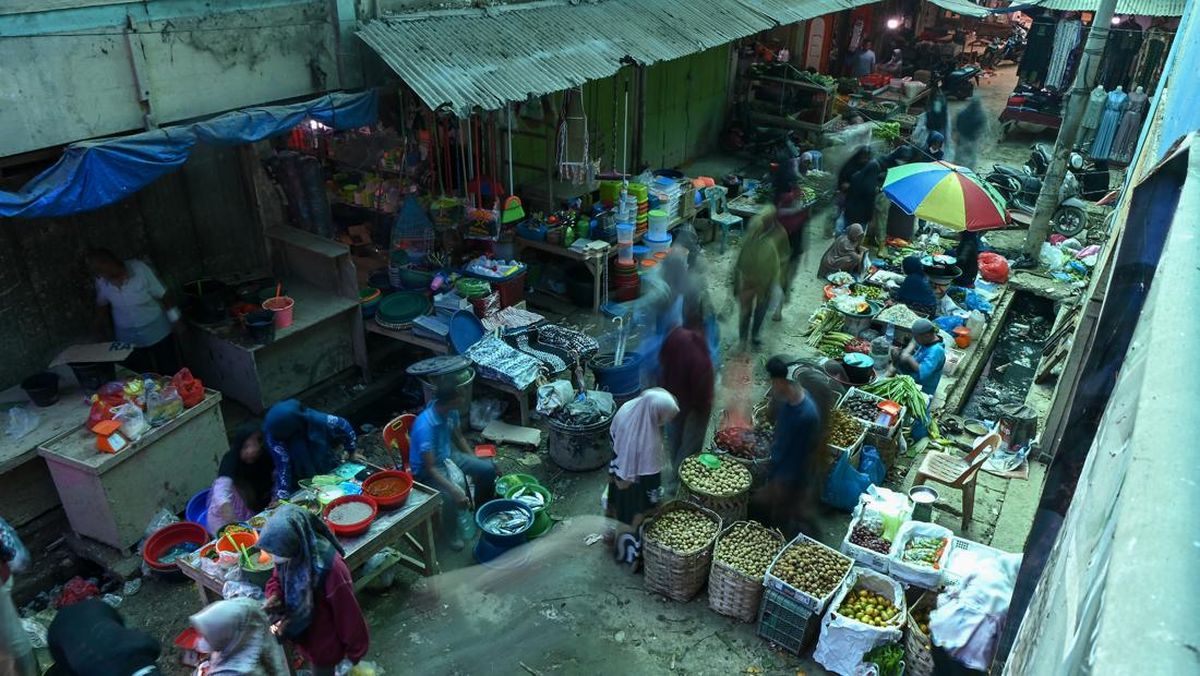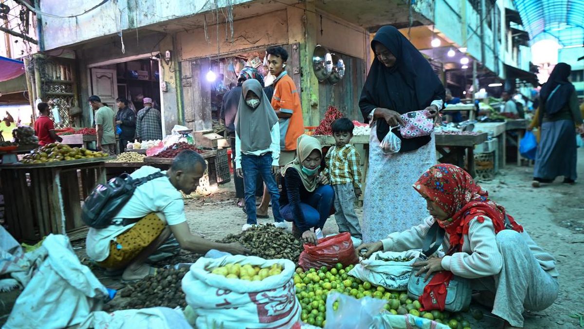 Suasana jual beli di pasar pagi Aceh Tamiang, Aceh, Sabtu (24/1). (ANTARA FOTO/Nova Wahyudi).