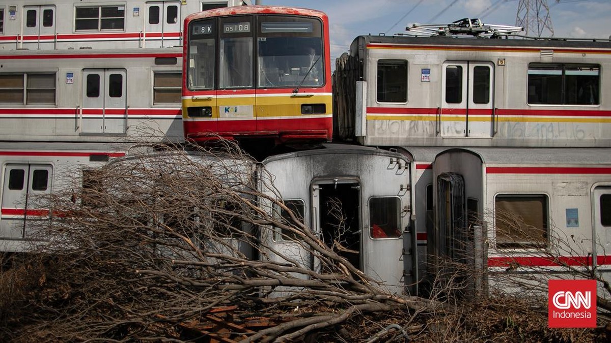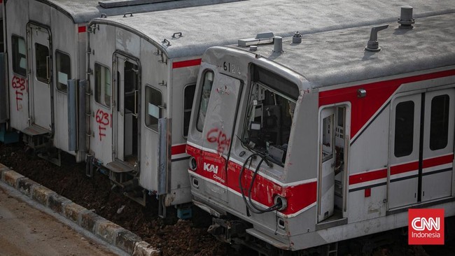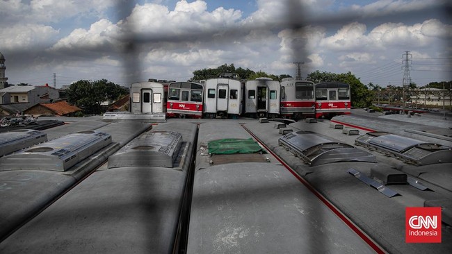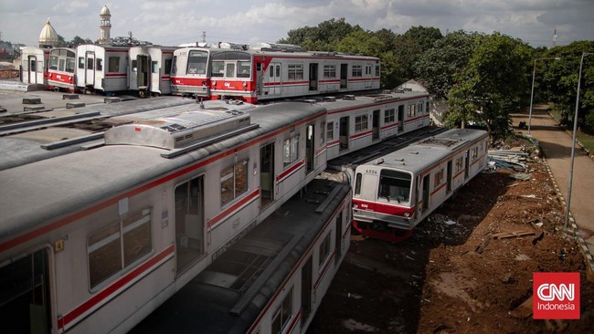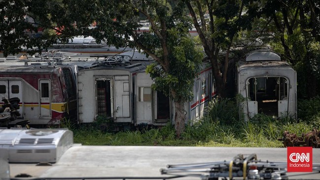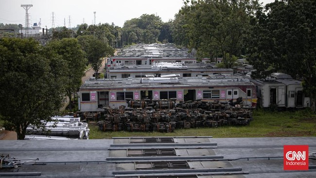 Jakarta, CNN Indonesia -- Sebanyak 242 gerbong dari sekitar 25 rangkaian dinyatakan kerusakan berat hingga afkir tampak menumpuk di Depo KRL Depok, Jawa Barat.