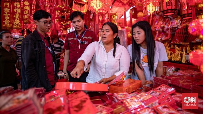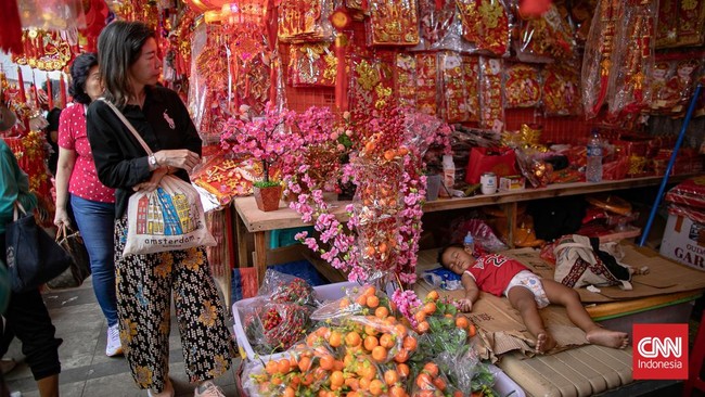 Geliat penjaja dan pemburu pernak-pernik Imlek mulai tampak di kawasan Pasar Glodok, Jakarta. Beragam hiasan menyambut Imlek memenuhi lapak-lapak pedagang.