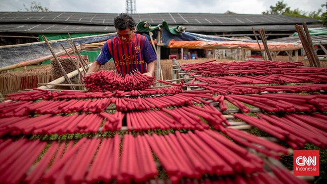 Industri rumahan pembuat hio di Tangerang mulai meningkatkan kapasitas produksi jelang perayaan Imlek.