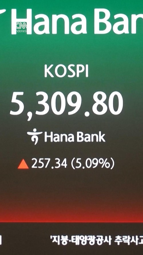 Di Korea Selatan, indeks acuan Korea Composite Stock Price Index (KOSPI) dibuka naik 277,58 poin atau 5,49 persen menjadi 5.330,04.