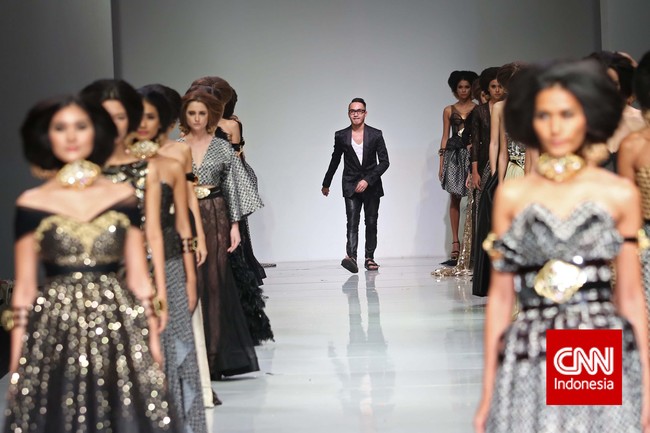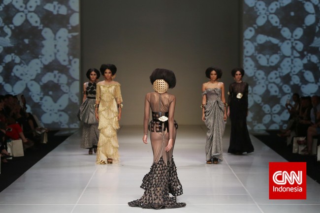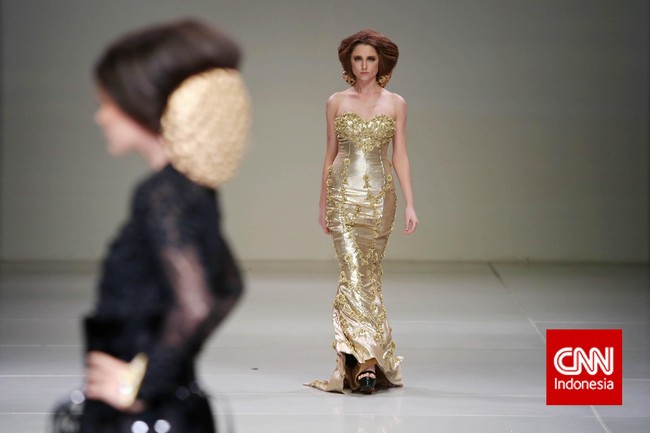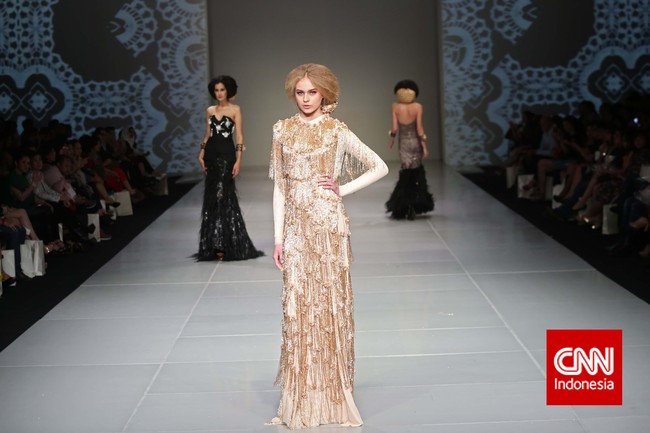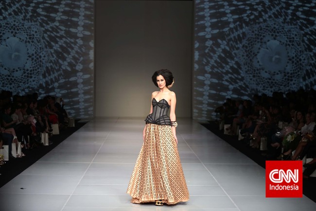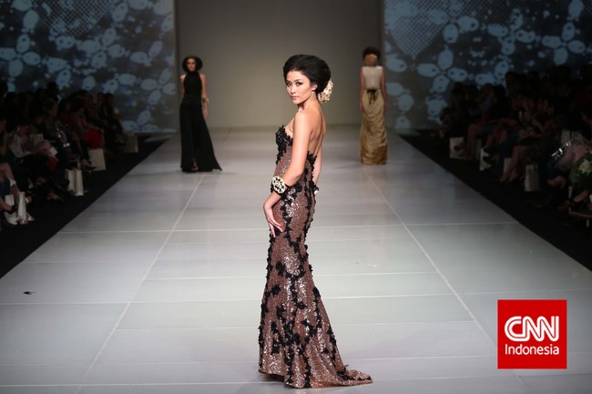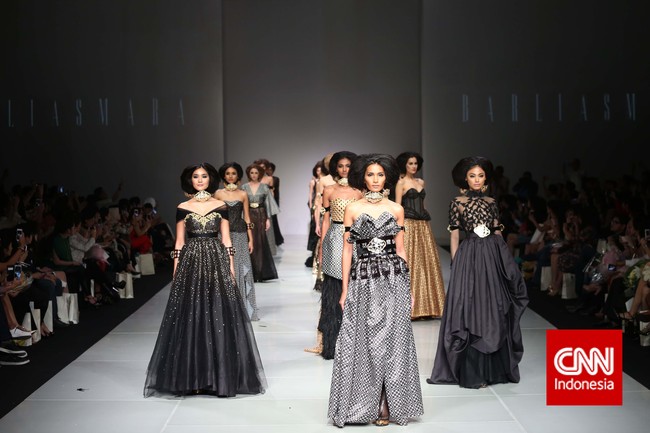 -- Barli Asmara menampilkan 48 gaun yang kesemuanya didominasi dalam palet warna hitam dan emas. Warna hitam dan emas ini melambangkan keagungan dan kebangsawanan.