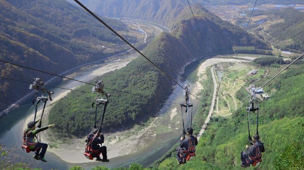 Berlokasi di Jeong Seon County ZipWire, area luncurannya berpemandangan langsung ke arah pegunungan dan Sungai Han setinggi kurang lebih 100 meter.