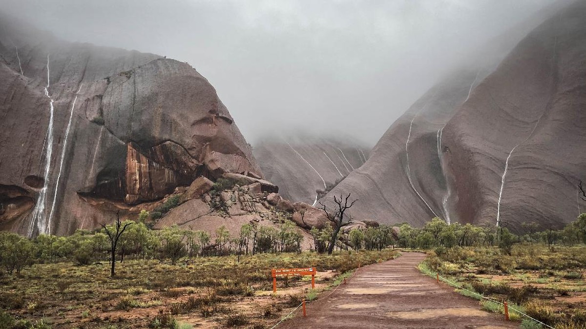 Fenomena Unik, Muncul Air Terjun di Bukit Batu Suci Australia