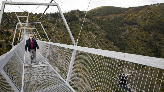 Portugal punya jembatan gantung terpanjang di dunia yakni 516 Arouca. Sesuai namanya, jembatan di Geopark Arouca ini memilik panjang 516 meter.