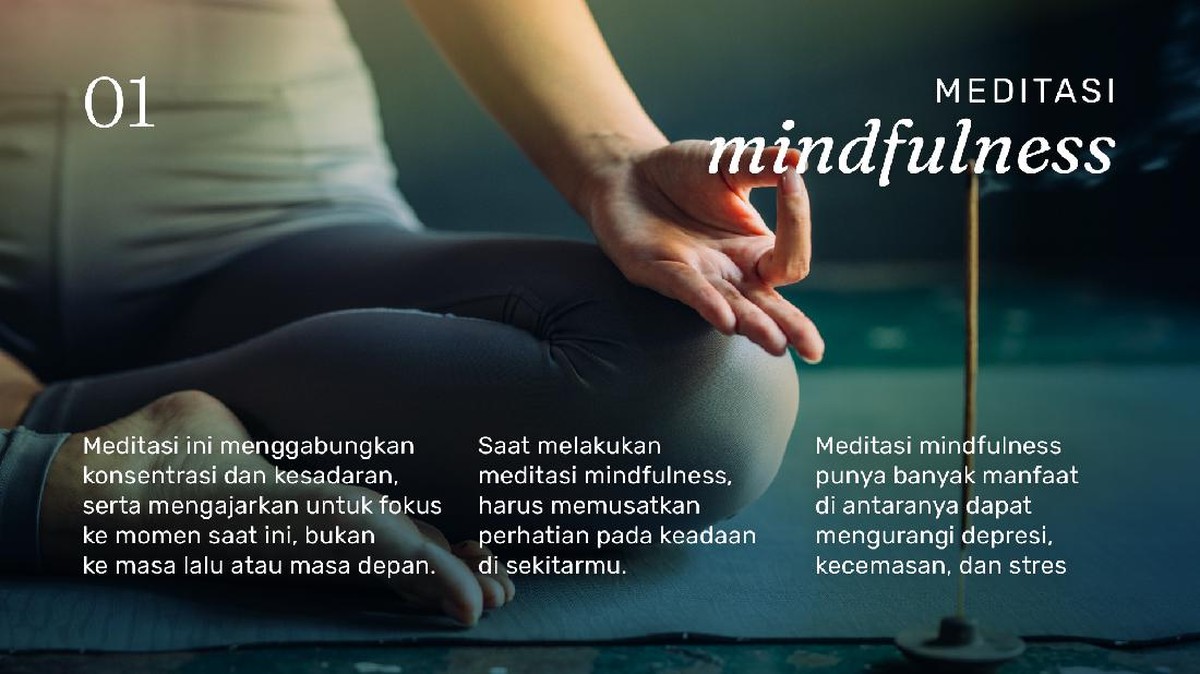 Meditasi tidak hanya sekadar diam dan duduk bersila saja. Terdapat tujuh jenis meditasi yang bisa dipelajari. Apa saja?