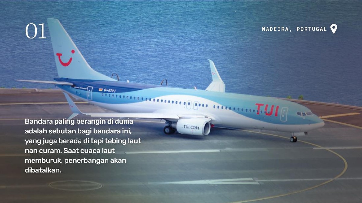 Jakarta, CNN Indonesia -- Berikut sepuluh bandara dengan lanskap landasan pacu yang paling mendebarkan di dunia.