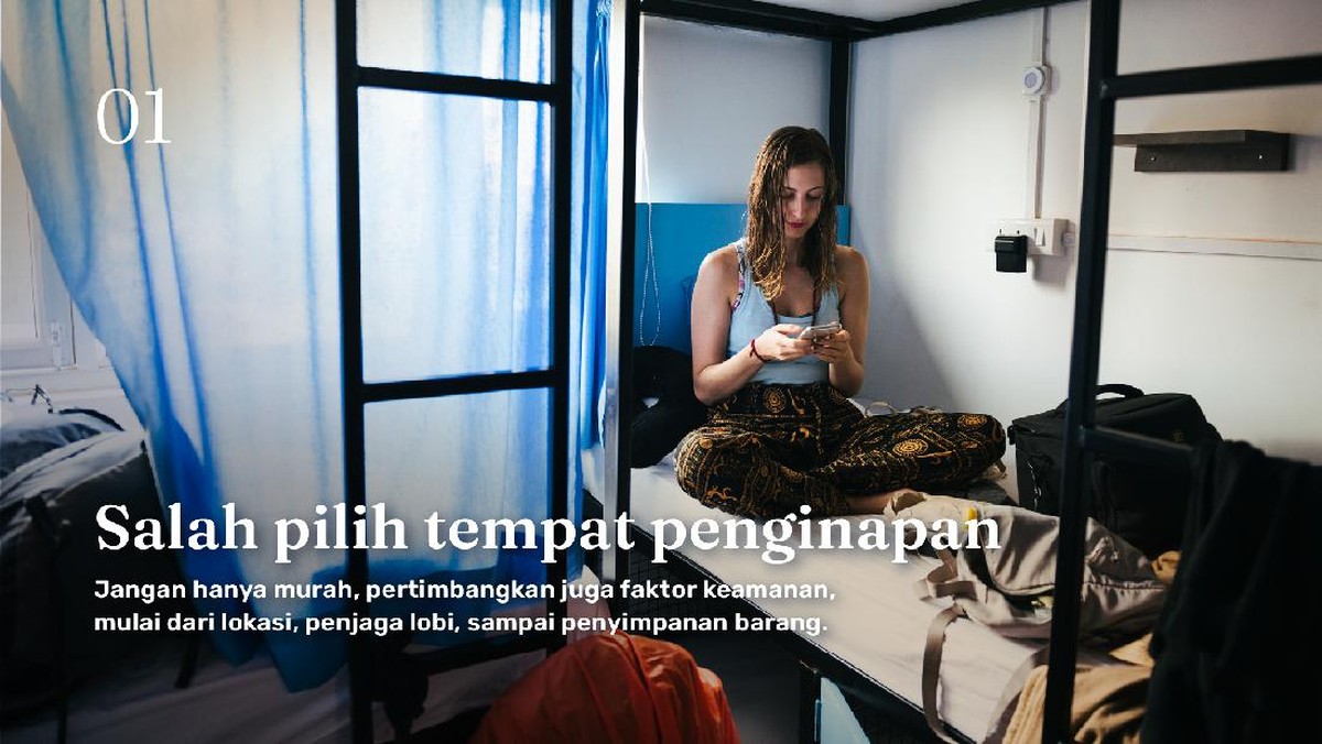 Jangan hanya mencari hotel yang murah, pertimbangkan juga faktor keamanan, mulai dari lokasi, penjaga lobi, sampai penyimpanan barang.