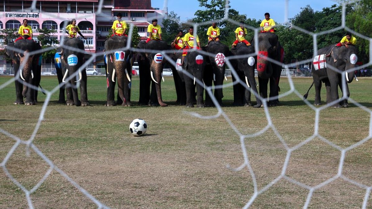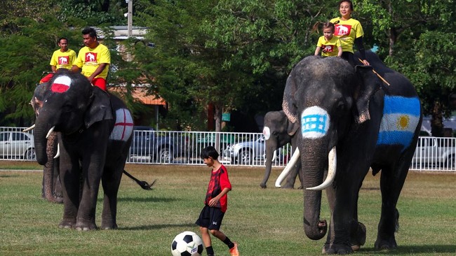 FOTO: Kala Gajah Thailand Berlaga Bak Atlet Sepak Bola di Piala Dunia