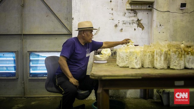 Sebuah bangunan di Tebet, Jakarta Selatan dijadikan area budidaya jamur tiram. Budidaya ini dirintis sang pemilik, Buchari, sejak Desember 2022 lalu.