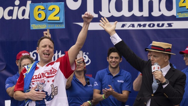 FOTO: Serunya Lomba Makan Hot Dog di Perayaan Hari Kemerdekaan AS