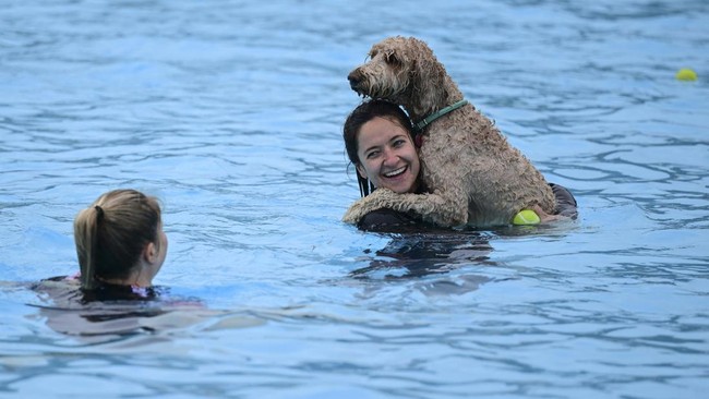 Jakarta, CNN Indonesia -- Belasan anjing asyik bermain air di Saltdean Lido, Brighton, Inggris, Minggu (24/9) lalu. Mereka bermain dalam gelaran Dogtember yang digelar rutin.