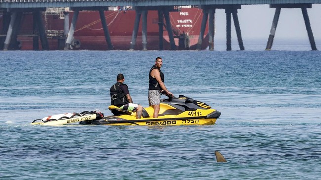 FOTO: Uji Nyali Liburan ke Pantai Bertemu Hiu di Israel