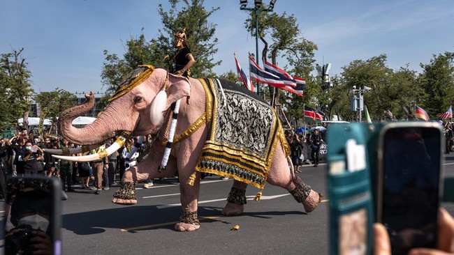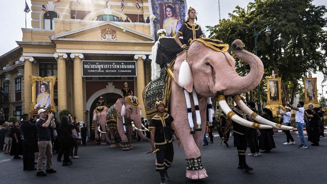 FOTO: Gajah Pink Beri Penghormatan Terakhir untuk Ibu Suri Thailand