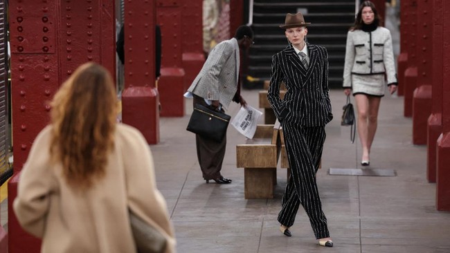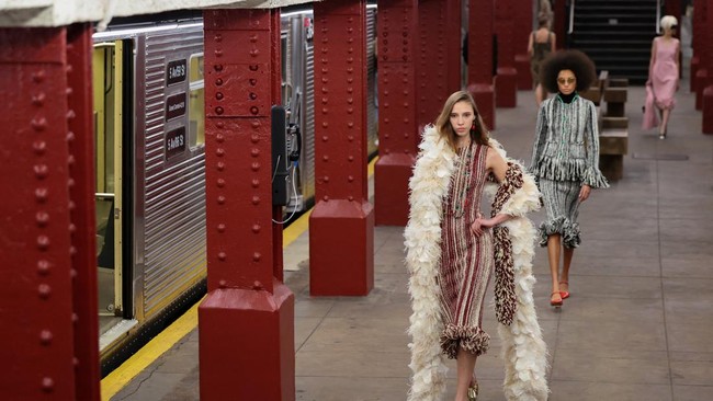 -- Chanel memamerkan koleksi Metiers d'Art 2026-nya di sebuah stasiun bawah tanah New York, Amerika Serikat.