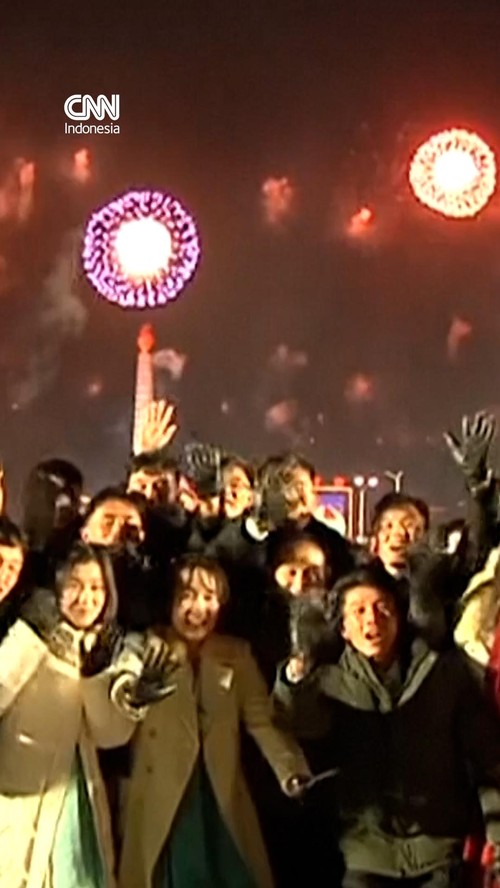 Pada malam yang sama, Pemimpin Korea Utara Kim Jong Un menghadiri perayaan Tahun Baru di Stadion May Day, Pyongyang.