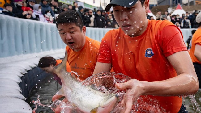Festival memancing di atas es tahunan Korea Selatan yang terkenal dimulai pada Sabtu (10/1) di Hwacheon, Gangwon, Korea Selatan.