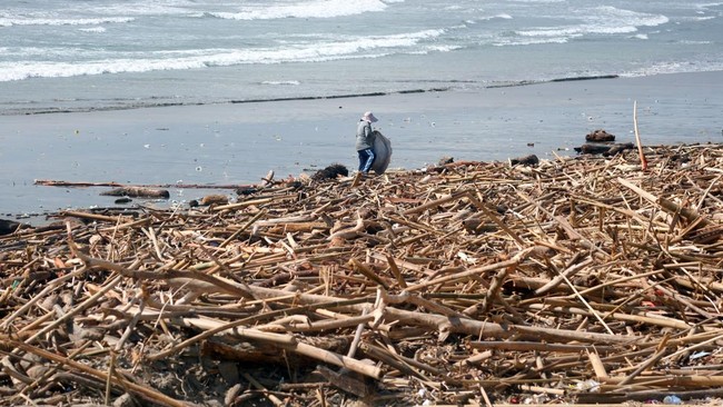 FOTO: Cuaca Ekstrem, Hamparan Sampah Kiriman Cemari Pantai Kuta Bali