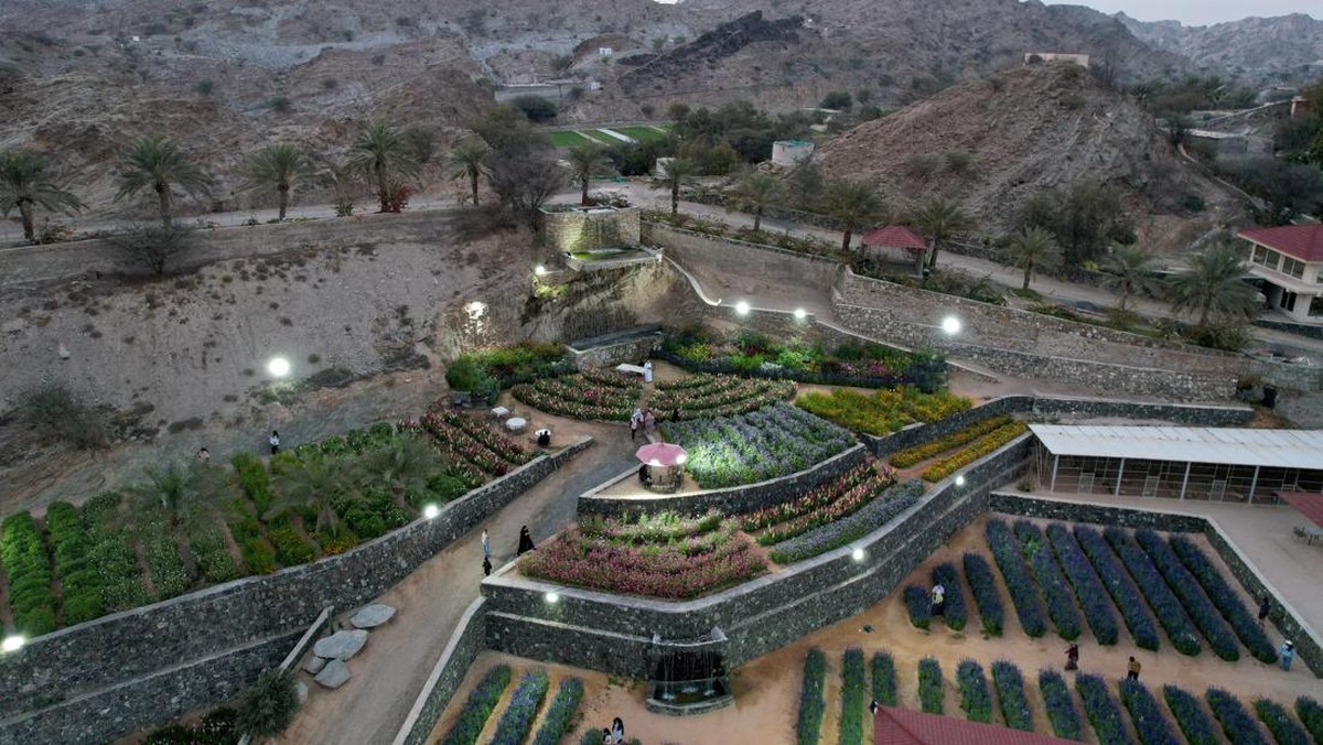 Siapa sangka di balik pegunungan di Uni Emirat Arab akan terhampar sebuah padang bunga yang indah hasil usaha dari pengusaha pertanian setempat.