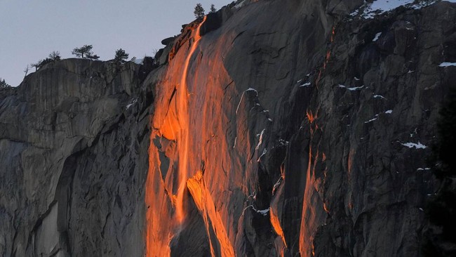 Pertunjukan istimewa 'Air Terjun Api' atau Firefall ini terjadi setiap bulan Februari, di Taman Nasional Yosemite, California, AS.