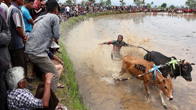 FOTO: Pesona Magis Pacu Jawi di Tanah Datar Sumbar yang Mendunia