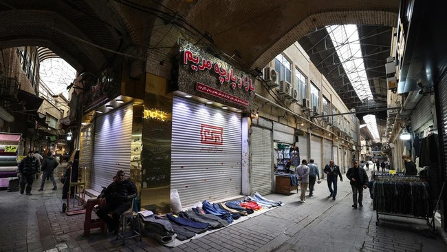 Grand Bazaar Teheran, pusat perbelanjaan terbesar dan tertua di Teheran, Iran, terdampak perang. Banyak toko tutup dan harga barang meroket.