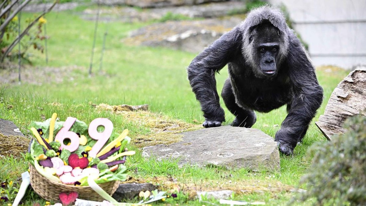 Gorila betina tertua di dunia, Fatou, merayakan ulang tahunnya yang ke-69.