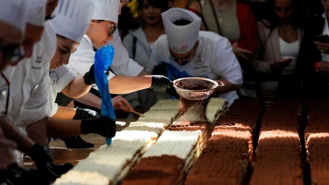 Hidangan penutup raksasa ini membentang sepanjang 440,6 meter, jauh melampaui rekor sebelumnya sebesar 273,5 meter yang dicetak di Milan pada 2019.