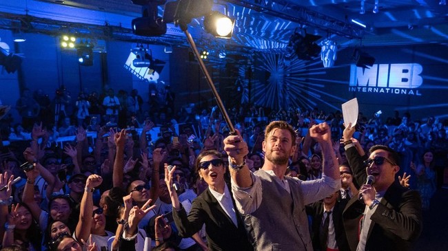 Tom Holland dan Chris Hemsworth menyapa penggemar mereka sembari promosi film masing-masing: 'Spider-Man: Far From Home' dan 'Men In Black: International'.