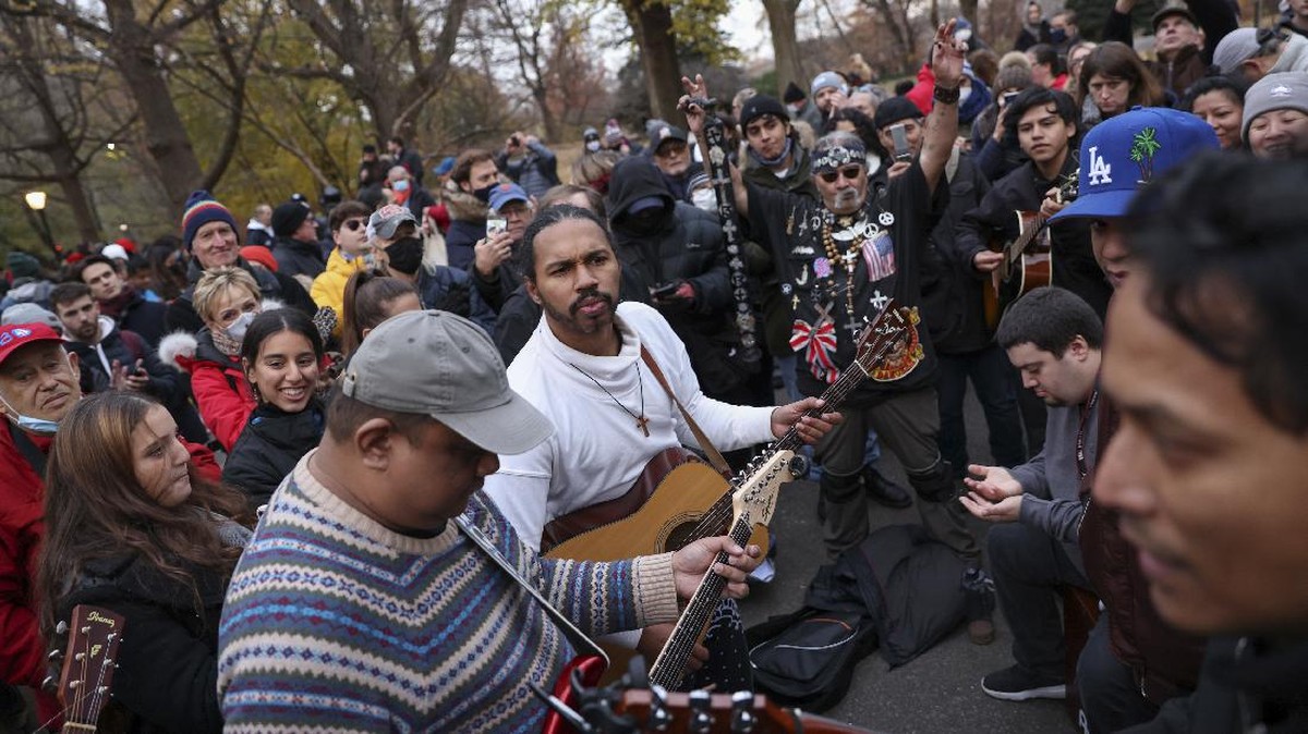 Para penggemar mengenang kematian idola mereka, John Lennon, yang memasuki tahun ke-41 di the Strawberry Fields Central Park, pada Rabu (8/12).