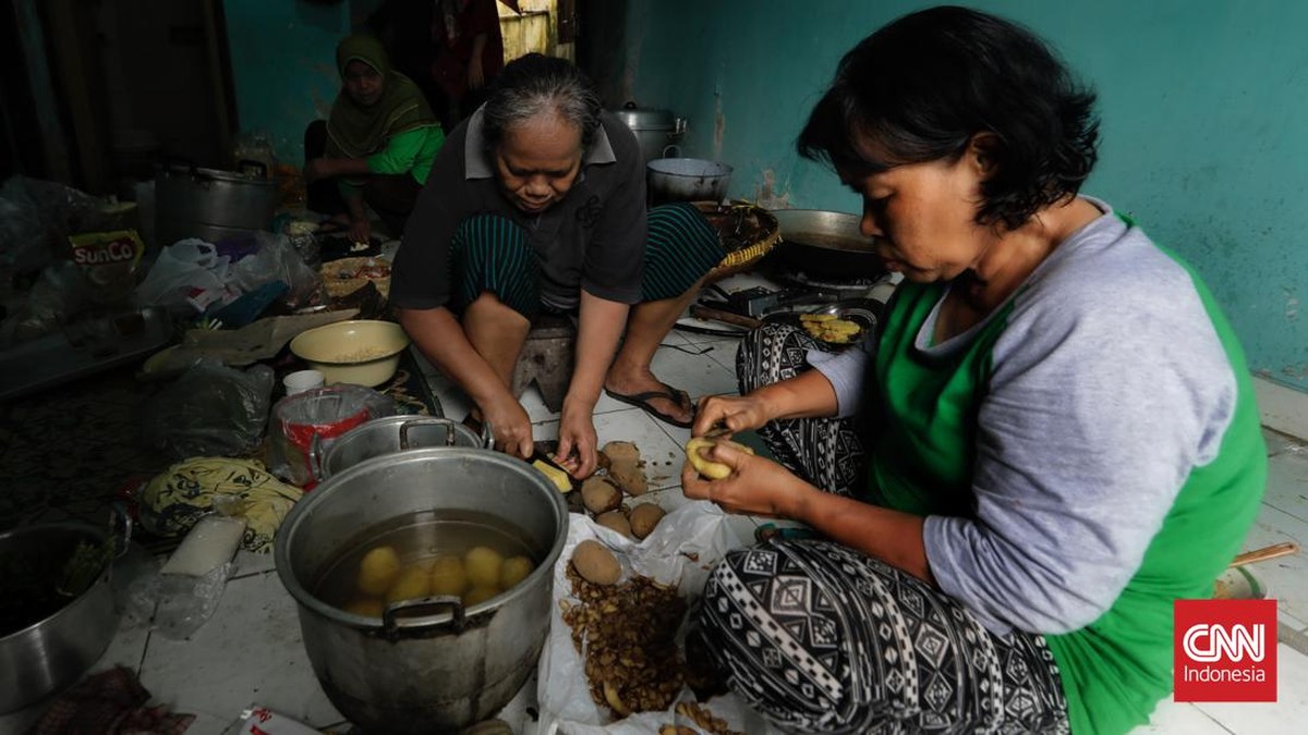 Warga sekitar kediaman Erina di Dusun Purwosari, Sleman, Yogyakarta, menggelar masak bersama menyiapkan besek yang akan dibagikan, Kamis, 8 Desember 2022.