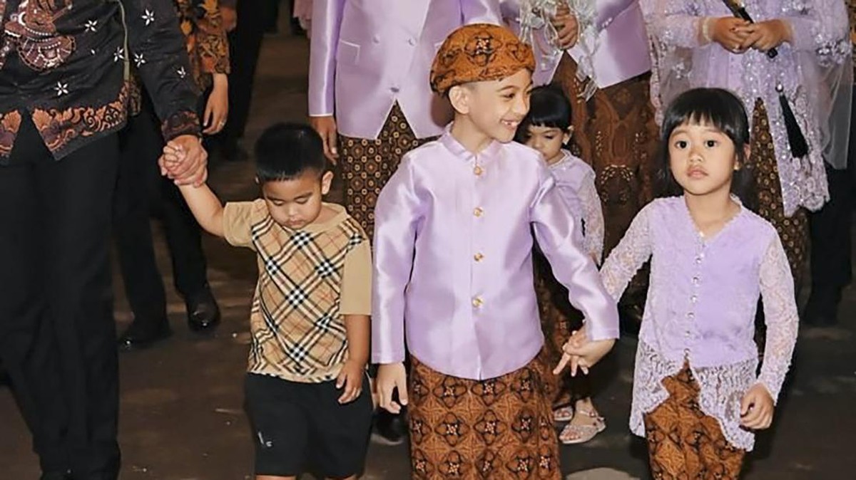 Para cucu Jokowi, seperti Jan Ethes dan Sedah Mirah, menarik perhatian netizen saat mereka menghadiri malam midodareni Kaesang dan Erina.