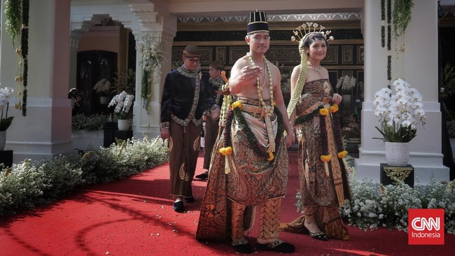 Solo, CNN Indonesia -- Saat ngunduh mantu di Loji Gandrung, Solo, Kaesang dan Erina melakukan sungkeman kepada Jokowi dan Iriana untuk minta doa restu.