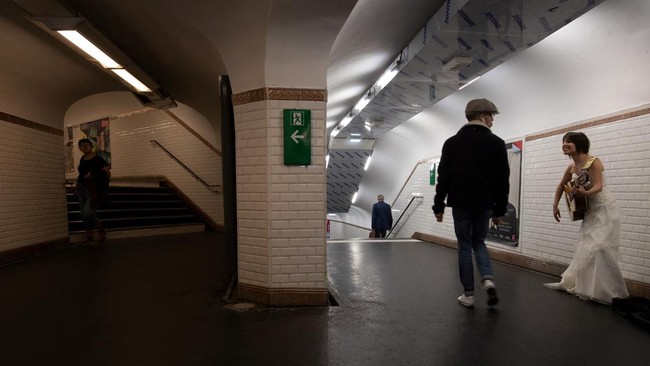 FOTO: Senandung Pengamen Legal di Stasiun Metro Paris