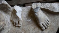 -- Sebuah patung kaisar Romawi yang berpose sebagai Hercules ditemukan saat ada perbaikan selokan di Roma, Italia.