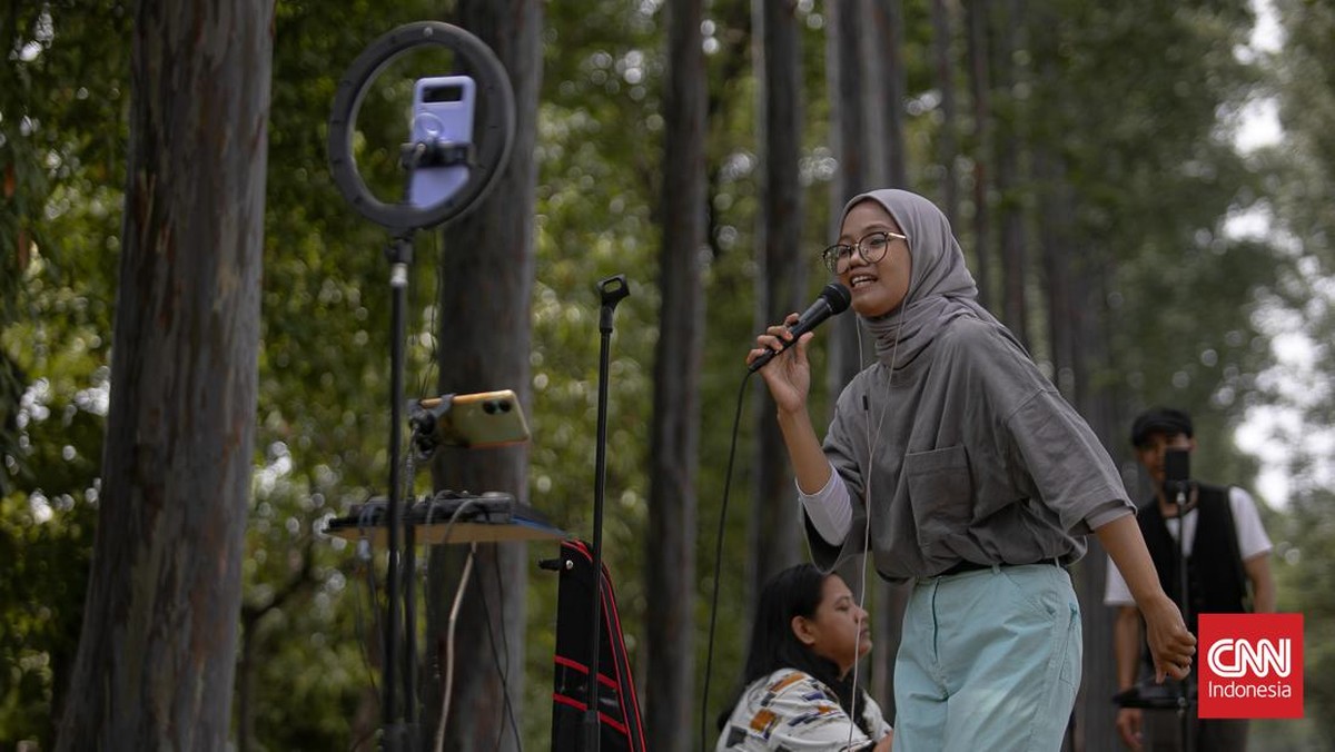 Kawasan Banjir Kanal Timur (BKT), Jakarta Timur, menjadi ruang baru bagi para TikToker untuk "ngamen" secara live streaming.