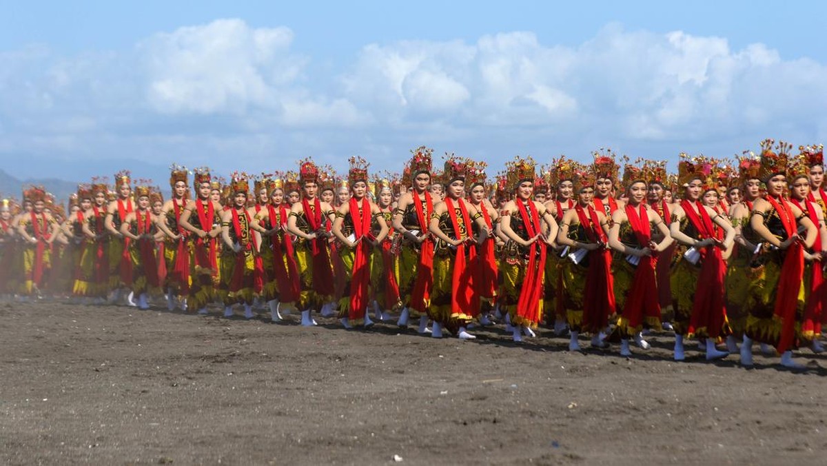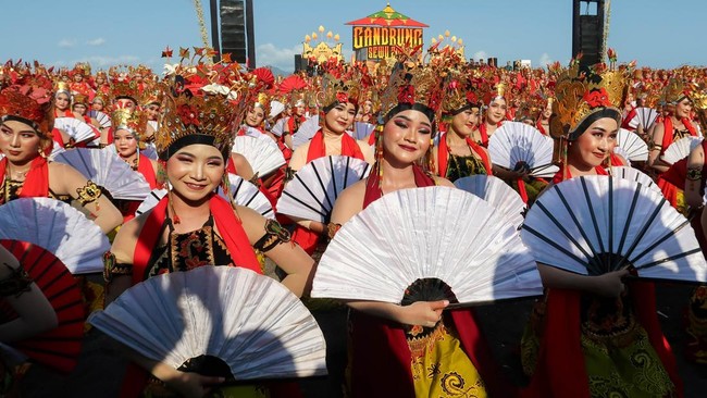 FOTO: Harmoni Ribuan Penari Gandrung di Pantai Banyuwangi