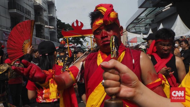 Jakarta, CNN Indonesia -- Masyarakat Tionghoa di Jakarta kembali merayakan Cap Go Meh pada hari ke-15 Imlek. Tatung berarti orang yang dirasuki roh.