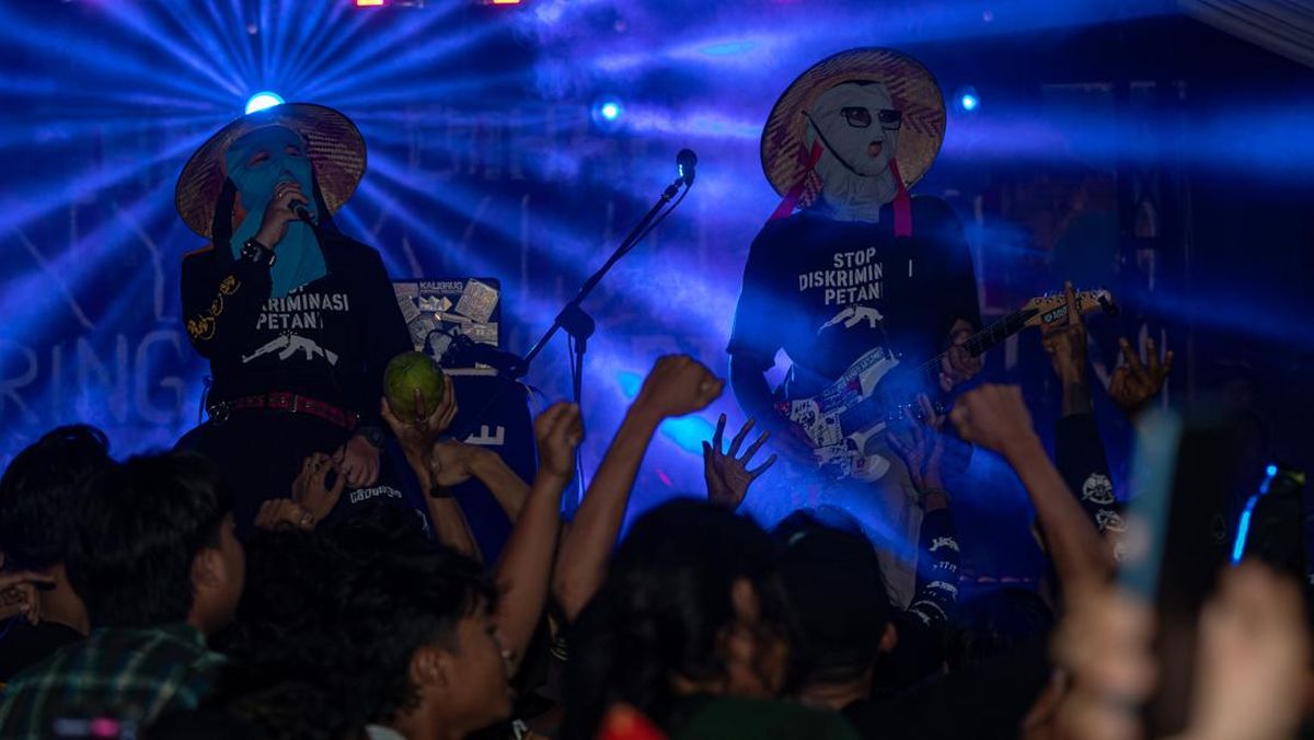 Dalam penampilan itu, Sukatani juga menyerukan tentang pentingnya pelestarian alam Indonesia. (ANTARA FOTO/Aji Styawan)