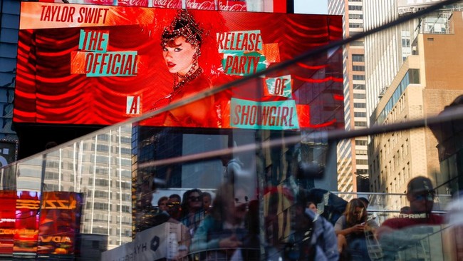 -- Album terbaru Taylor Swift, The Life of Showgirl, resmi rilis 3 Oktober 2025 dengan berbagai promosi berada di mana-mana.