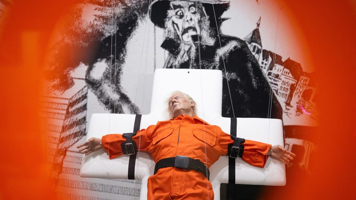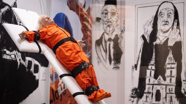 FOTO: Patung Donald Trump Berbaju Tahanan Disalib Nongol di Swiss